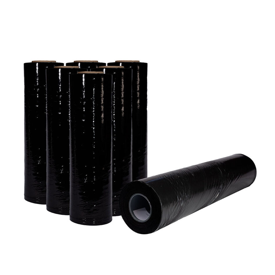 4 Rolls 25UM Black 500mm X 400m Hand Stretch Wrap 4.7 kg/roll